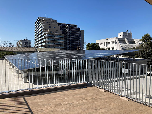 施設整備にあたっては、電気設備、情報通信設備の施工業者として、大崎システック、大崎電設、大崎コンピュータエンヂニアリングの電機グループ3社で施工に携わりました。本施設では屋上に太陽光発電設備を備え、日常の消費電力を賄うことで地球環境にも配慮しています。